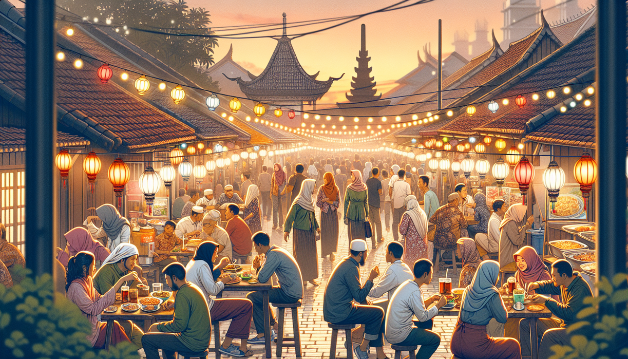 Dimensi religius terasa jelas ketika azan berkumandang. Keramaian kuliner seketika melambat, pembeli dan penjual menghentikan transaksi, fokus pada momen berbuka. Ini saat yang pas bagi penulis blog untuk berhenti memotret, ikut meresapi suasana syukur kolektif. Peralihan cepat dari hiruk-pikuk ke suasana khusyuk tersebut menghadirkan kontras emosional. Kontras ini bisa menjadi bahan refleksi: dalam kehidupan sehari-hari, seberapa sering kita memberi ruang hening di tengah rutinitas yang padat.